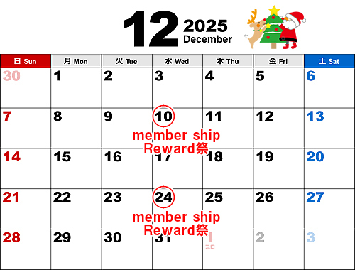 【12月10日(水)・24日(水) 開催】Member Ship Reward祭= 最大8,000pt付与 =50分コース 2000P付与