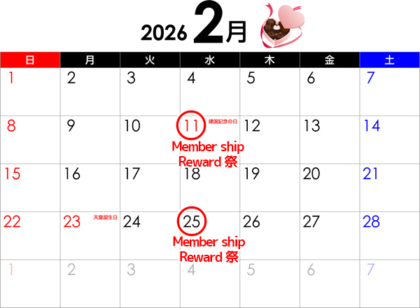 【2月11日(水)・25日(水) 開催】Member Ship Reward祭= 最大8,000pt付与 =50分コース 2000P付与