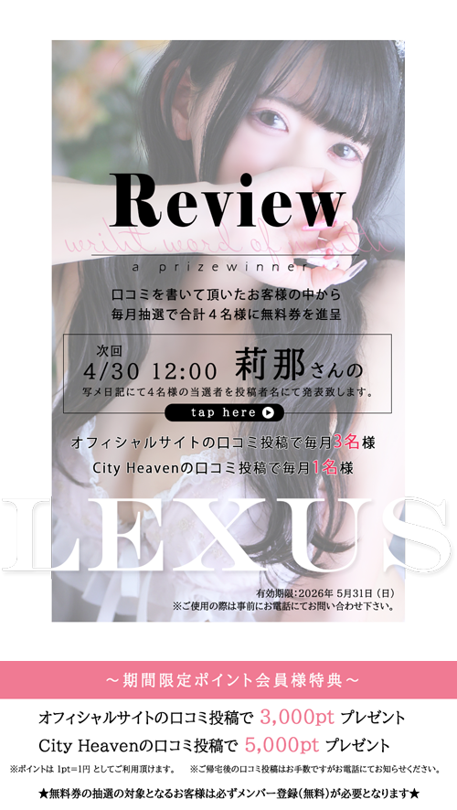 久しぶりのレクサスで、はじめて乃亜さんに遊んでもらいました。 驚くほど可愛くて、写真より全然可愛くてとても驚きました。 会話も楽しくて、気遣いがとてもうまく、とても癒してもらえた。 次はロングで指名したいと思います。 今日は本当にありがとう。